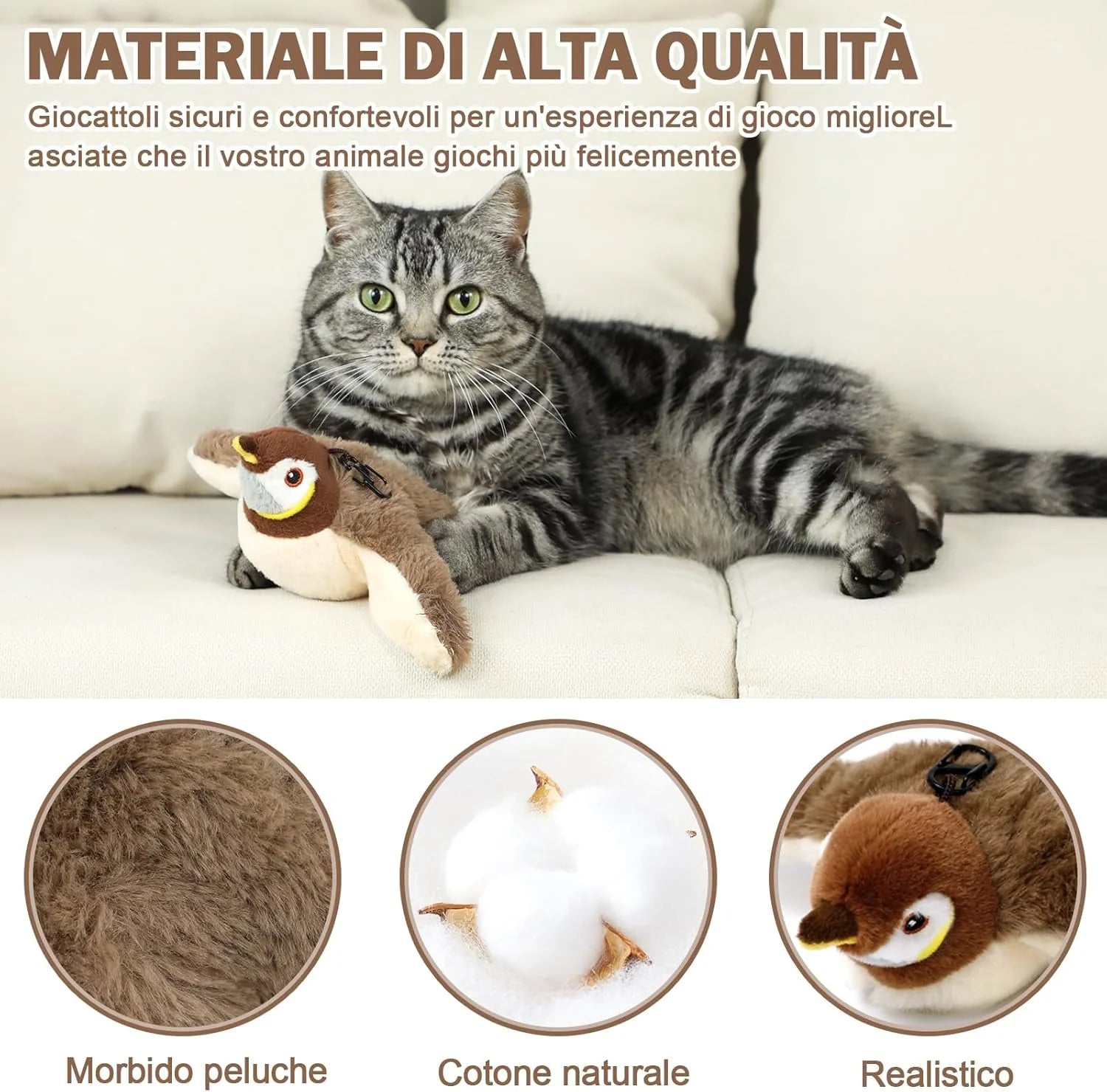🐱 Il nostro uccellino interattivo riproduce movimenti realistici e suoni naturali, attirando l’attenzione del tuo micio e mantenendolo attivo e felice.